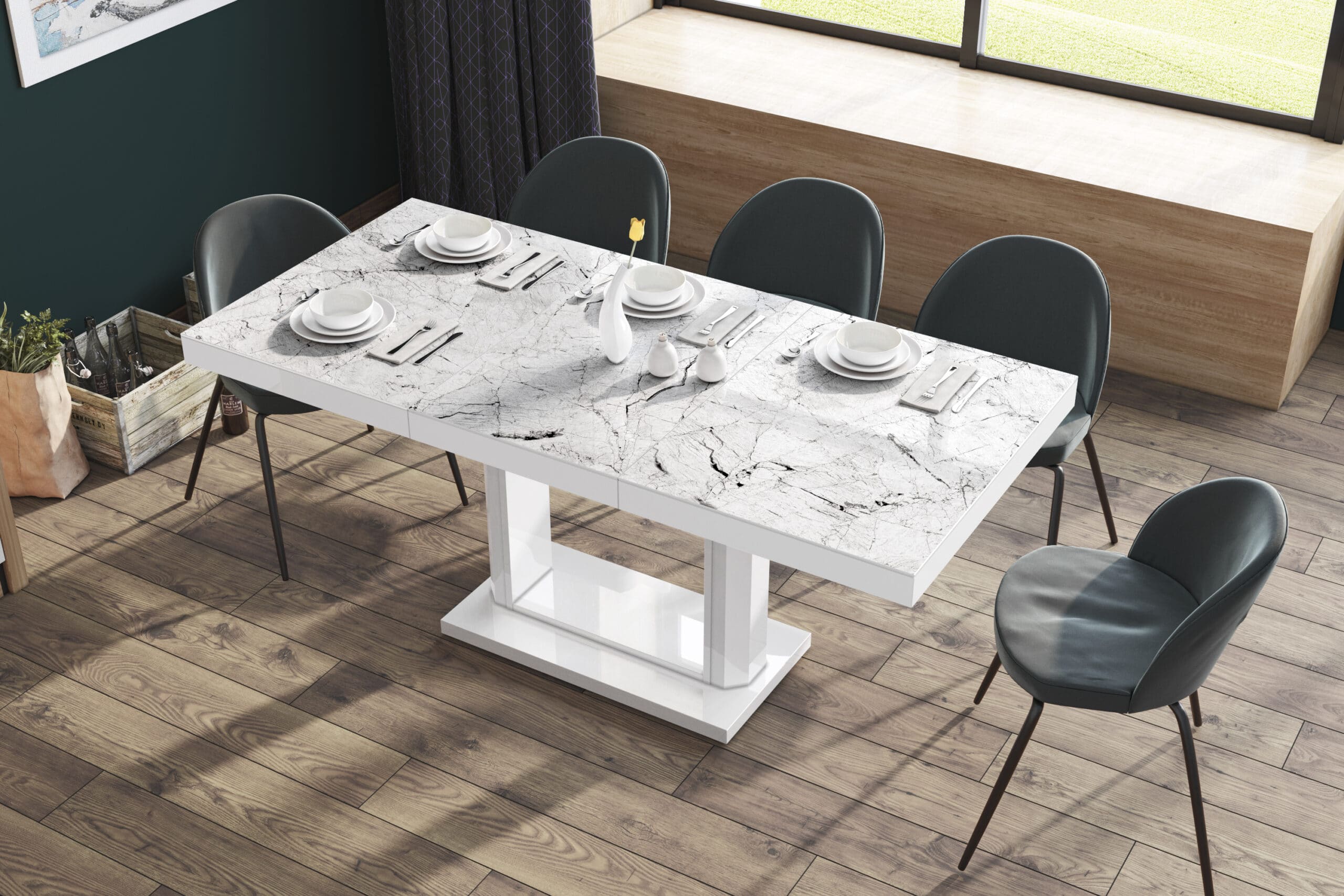 De Dicy Uitschuifbare Eettafel is stijlvol ontworpen en heeft een prachtig tafelblad van kwalitatief hoogwaardige materialen!